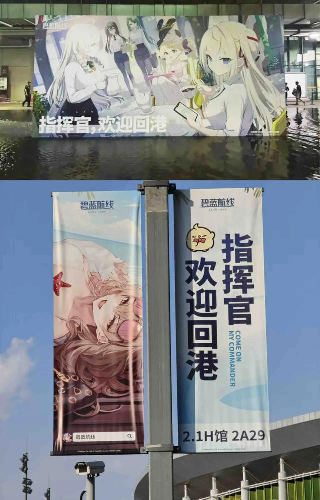 《碧蓝航线》是BW的常客了。每年到了这个时候,那句「指挥官,欢迎回港」的标语就会成为热梗——因为每到BW举办时间,上海总会准时下起暴雨,在积水中矗立的「回港」二字,显得那样贴切。
