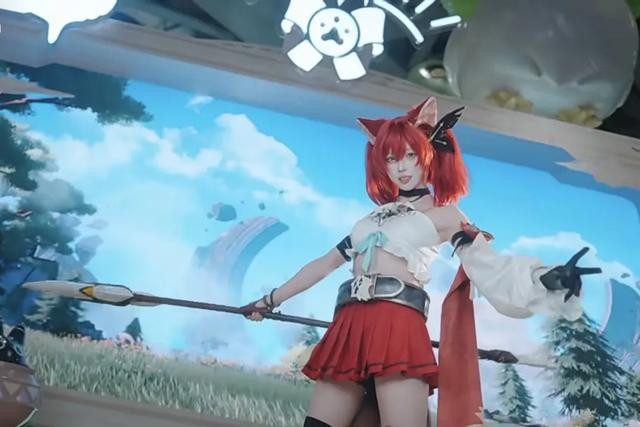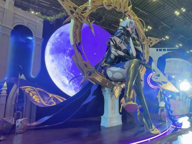 再比如另一位「环字辈」《归环》,这是款由腾讯旗下萨罗斯工作室制作的大世界二游。自上月首曝以来,游戏PV已经在B站上已超过800万播放。这两天也是排面拉满:他们不仅做了一个和Coser互动的特殊环节,还制作了一个目测得近3米高的角色雕像,引得不少人驻足拍摄。