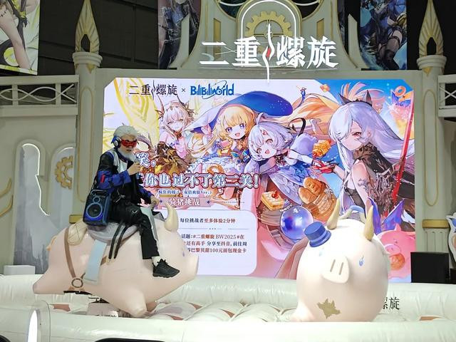 还有不久前三测刚结束,主打动作割草爽游的《二重螺旋》,为了整活也是够拼:他们以游戏中的骑猪少女「松露与榛子」为灵感,不仅安置了两台可以骑的「摇摇猪」,还在展台前的放了两辆婴儿车。凑近一看,果然是两只在熟睡的小猪。
